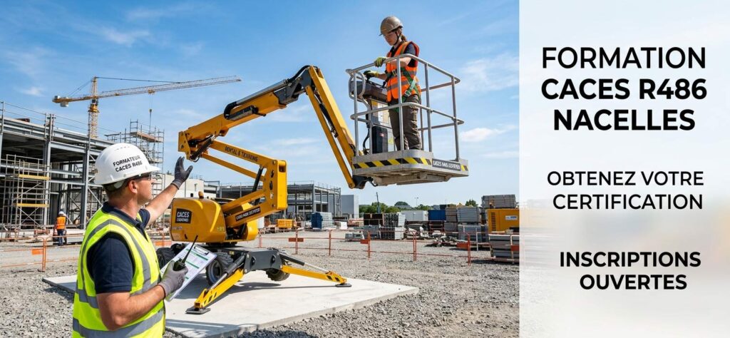 La formation CACES R486 dans le Gard concerne la conduite des plateformes élévatrices mobiles de personnes (PEMP), aussi appelées nacelles.